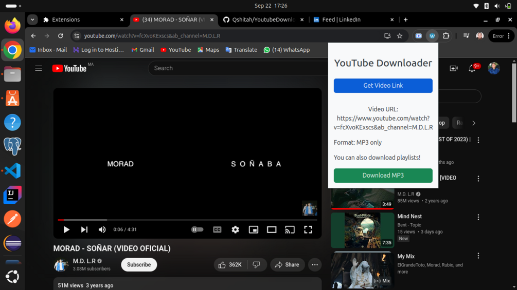 The YouTube Downloader Chrome Extension allows you to download YouTube videos as MP3 files directly from your browser. This tool is designed for ease of use, providing a simple interface to grab the video URL and start the download process quickly.